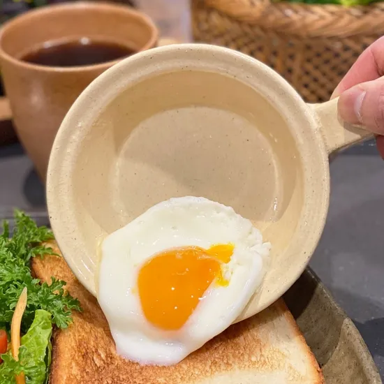 土鍋に少量の油と卵を入れて、直火に当てるだけで目玉焼きができてしまう。まさに、手間いらず。